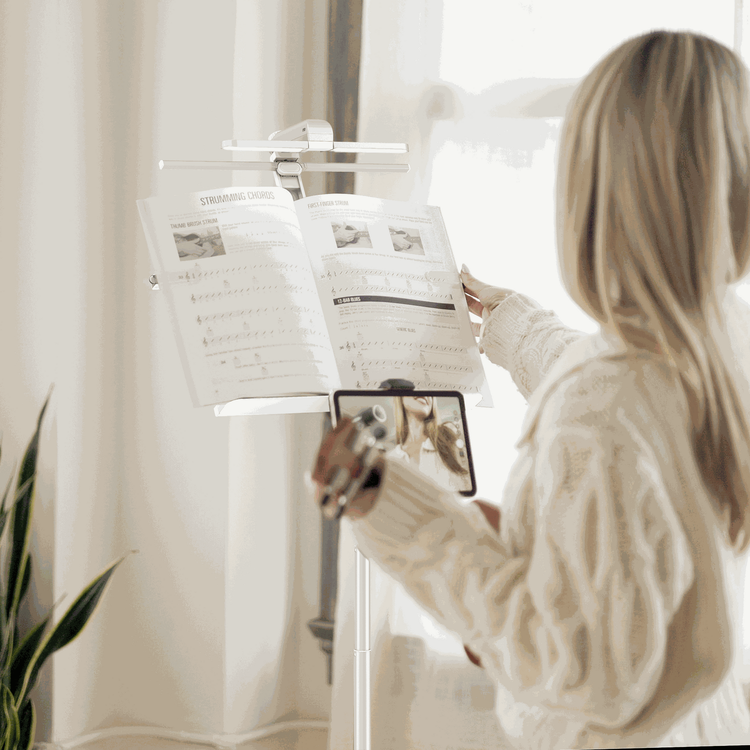 Twist to unlock the upper support and tilt to your desired viewing angle in 205° range. Enjoy comfortable reading with a 30° backward angle. With the 5cm depth metal tray and 43x39cm desk size, the sheet support holds song books of all sizes, as well as papers and tablets.