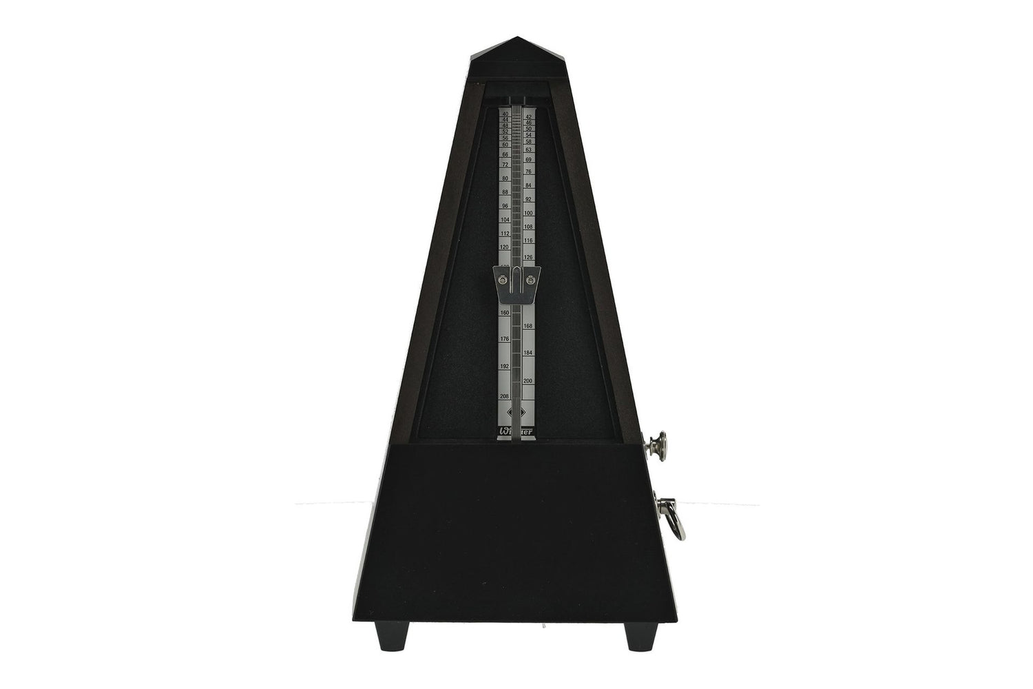 This metronome is one of Wittner’s top of the range models, made with beautiful solid wood and stained black with a matte finish. The material that a metronome is made from affects the sound that it produces and with a completely wooden casing, this metronome has a very pleasant and traditional tick-tock sound. If you can imagine a wooden percussive instrument vs a plastic one, you can imagine the different tones they might produce. Size will also affect the tone and volume of a metronome, and this metronome is loud enough for use with a piano or in an ensemble setting.