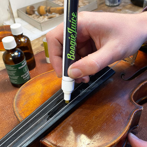 BOOGIE JUICE is an all natural cleaning product designed specifically for the care and maintenance of instrument fingerboards. With its patented dispensing system, BOOGIE JUICE can effectively remove dirt and oily build up from your instrument fingerboard. It is also great at removing sticky residue from fingerboard stickers.